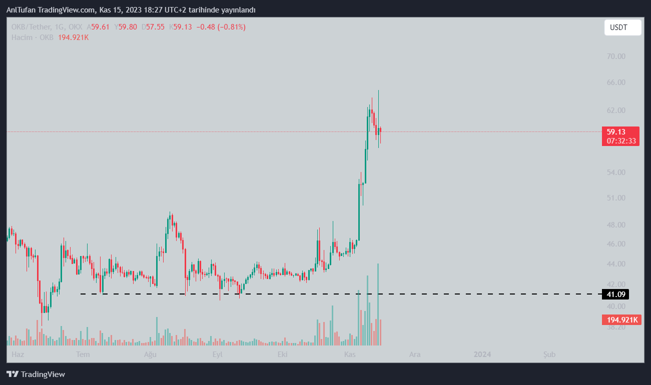 Son ayı sezonunda 10 dolara kadar düşen OKB, şuan itibariyle ise 59 dolardan işlem görüyor. OKB yaşadığı yükselişler ile son boğa sezonunun zirvesini de kırmayı başardı.