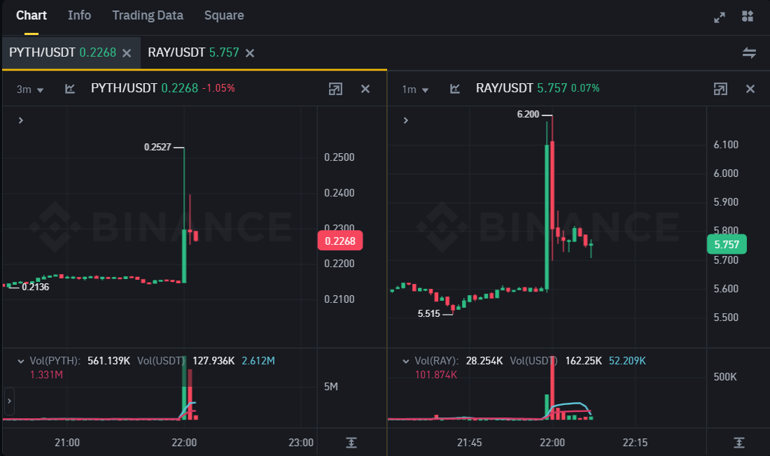 Robinhood’un listeleme haberinin sonrasında 2 altcoin’de de ani yükselişler meydana geldi. RAY duyuru sonrasında %12 oranında değer kazanırken, PYTH’ın ise %16’lık bir sıçrama yaptığı gözlemlendi.