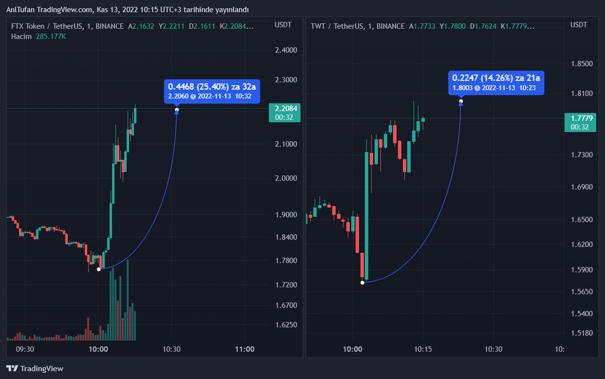 İflas etmiş bir borsa olan FTX’in tokeni FTT, Binance kurucusu CZ’nin önemsemesi ve duyuru paylaşması ile birlikte dakikalar içerisinde yüzde 25’den fazla yükseliş yaşamayı başardı.