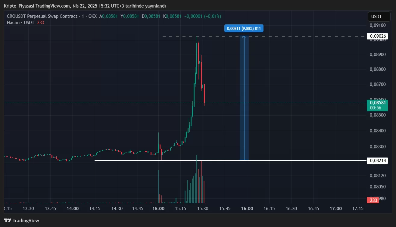 Bu son gelen ortaklık haberi ile birlikte Crypto.com borsasının yerel altcoin’i CRO ani yükselişler yaşadı. CRO’nun dakikalar içerisinde %10 oranında değer kazandığı görüldü.