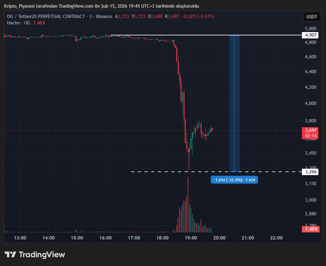 Kısa bir süre önce gelen bilgilere göre bu düşüşlerin yaşandığı esnada Binance borsasında listelenmiş bir altcoin olan OG, dakikalar içerisinde -%33 oranında çöküş yaşadı.