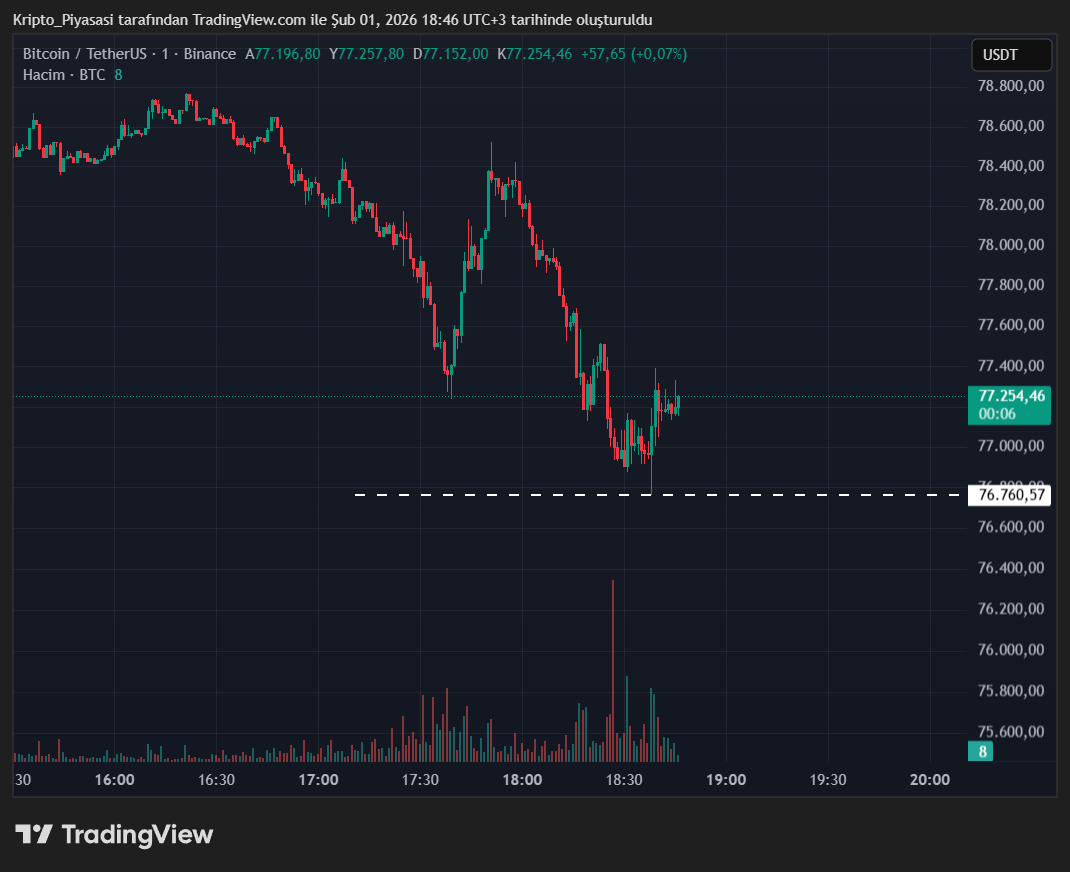 Kripto para piyasasında hafta sonu kötü geçiyor. Dün itibariyle 75.850 dolar seviyelerine kadar gerileyen lider kripto para birimi Bitcoin (BTC), sonrasında bir miktar toparlandı ve 79.500 dolar bandına ulaştı. BTC son dakikalarda ise tekrardan değer kaybetmeye başladı.