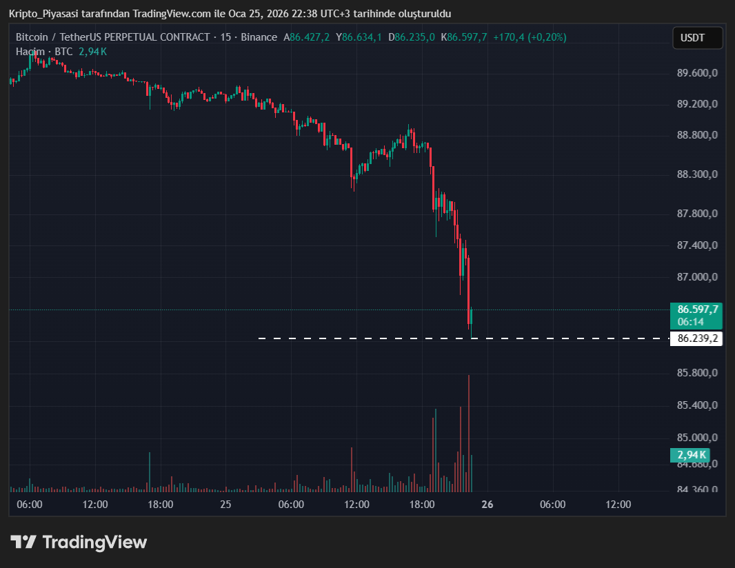 Bitcoin son yaşanan düşüşler neticesinde 86 bin dolar seviyelerine geriledi. Bugün özelinde -%3 oranında değer kaybeden BTC, altcoin’lerin -%10’a yakın düşüşler yaşamasına neden oldu.