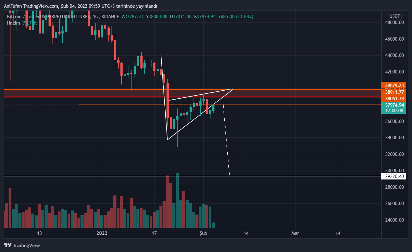 Saat 11.00’da gerçekleşecek olan 4 saatlik kapanış ardından düşüş yaşaması beklenen Bitcoin, 38.000 dolar direnç seviyesini geçmesi halinde ise çok daha volatil mumlarla yükseliş yaşayabilir.