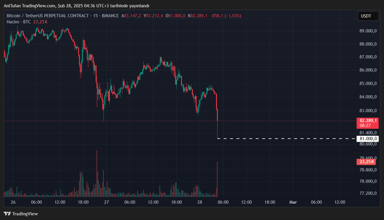 Bitcoin geçtiğimiz dakikalarda 81 bin dolar seviyelerine kadar bir geri çekilme yaşadı. En son 11 Kasım 2024 tarihinde bu seviyeleri gören BTC, tüm dikkatleri üzerine çekti.