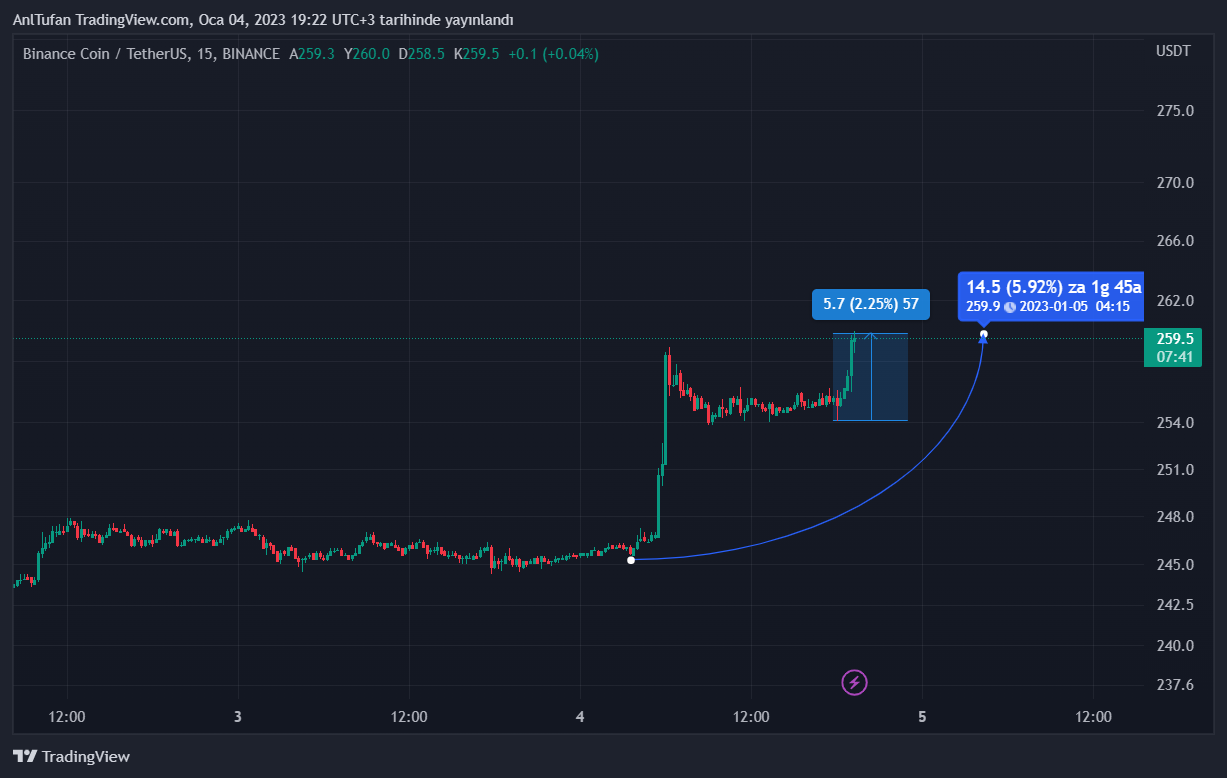 Şuan itibariyle Binance coin’in 260 dolar direncini zorladığı görülüyor. Bu direnç seviyesinin aşılması, ilerleyen saatlerde BNB’nin çok daha sert yükselişler yaşamasını sağlayabilir gibi gözükmekte.