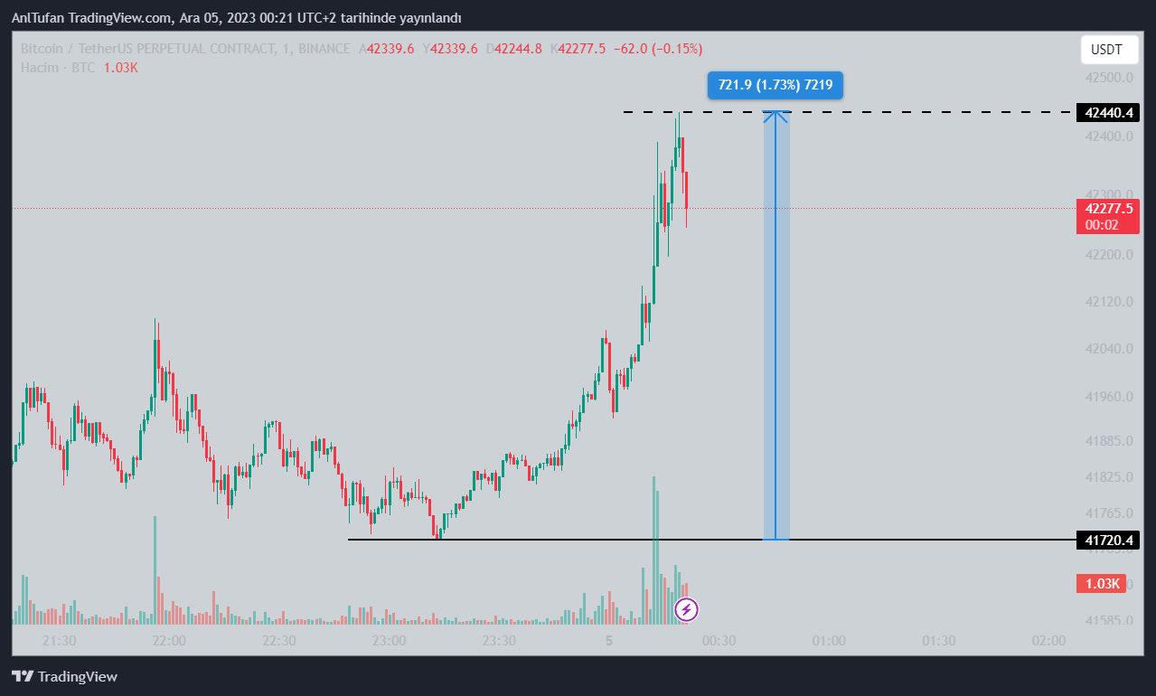 Son artış ile birlikte Binance’in spot piyasasında 42.440 doları gören Bitcoin, en son bu seviyeyi 2022 yılının Nisan ayında görmüştü.