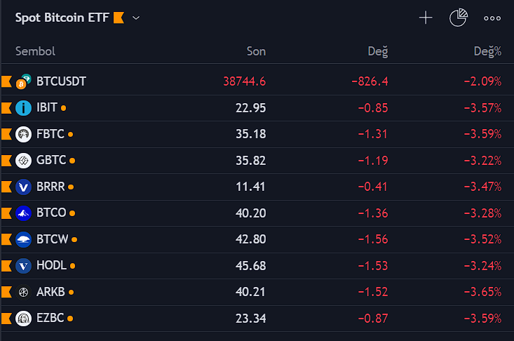 Spot Bitcoin ETF’leri TSİ 17.30’da ABD borsaları ile birlikte açılacak. Dün çok kötü kapanışlar yapan ETF’lerin, bugünde satıcılı bir şekilde açılması beklenmekte.