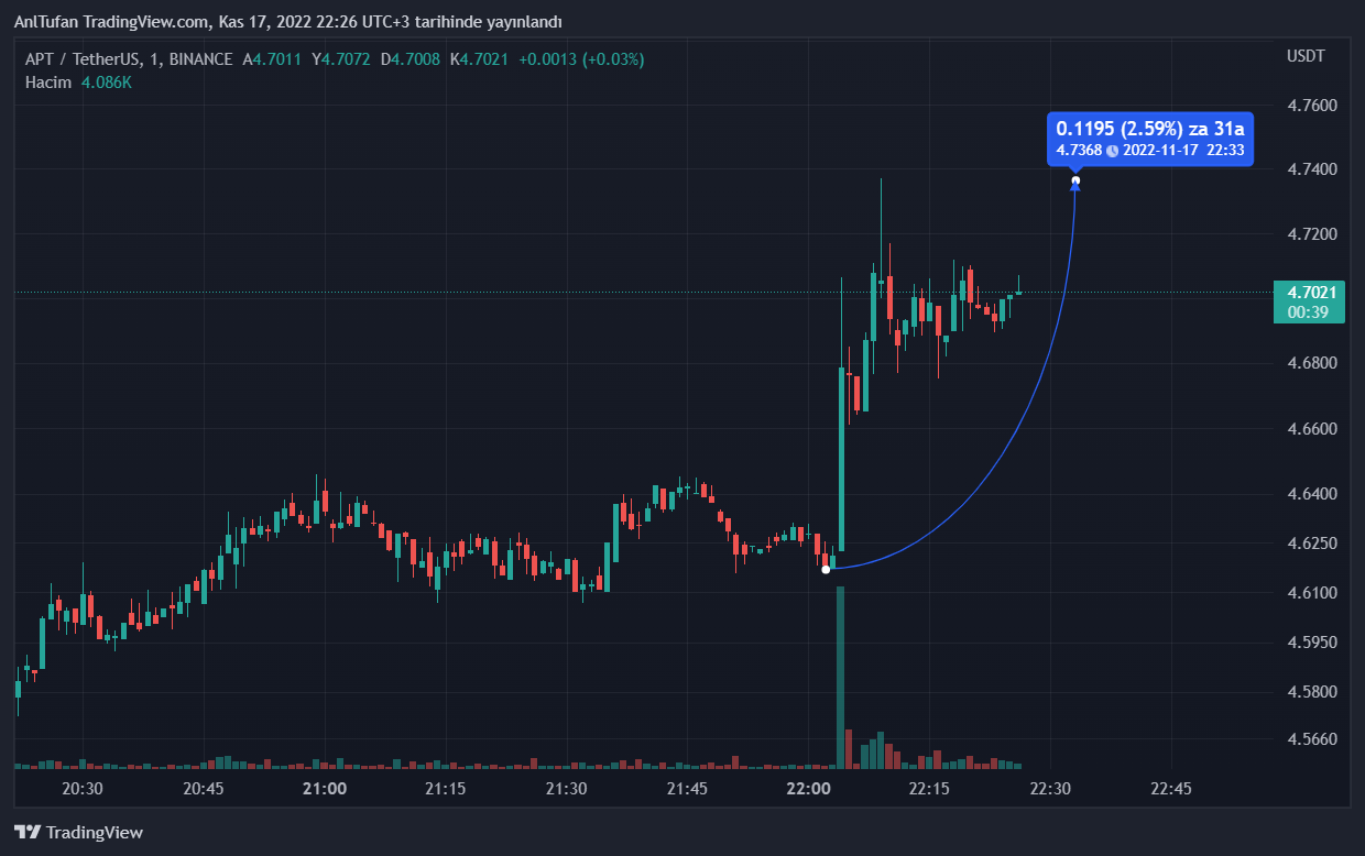 Aptos’un heyecan verici ortaklık olarak tanımladığı bu hamle, APT’nin şimdilik sadece yüzde 2.5 oranında yükseliş yaşamasını sağladı.
