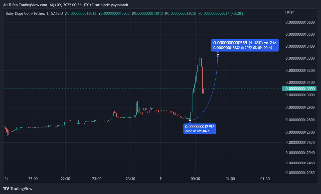 Bu duyurusuyla birlikte birçok yatırımcısını heyecanlandıran ekip, BABYDOGE‘nin de yükselişe geçmesini sağlamış durumda.