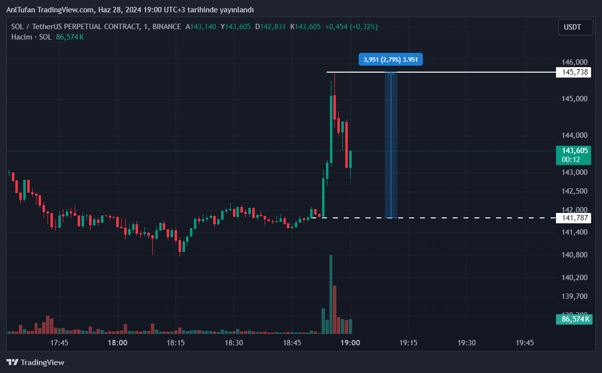 Her ne kadar dünkü VanEck Solana ETF başvurusu sonrasında SOL fiyatında %6’lık bir artış yaşansa da, bugünkü başvuru haberi o kadar etki yaratamadı. Son haberler ile birlikte SOL, %3’e yakın bir sıçrama gerçekleştirdi.