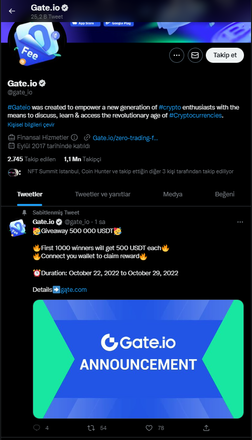 “ikinci Bir Duyuruya Kadar gate.io resmi Twitter Hesabında Paylaşılan Hiçbir Bağlantıya Tıklamayınız!”