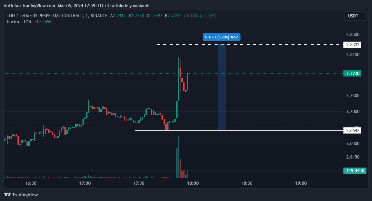Bu gelişme ile birlikte, TON’un yukarı yönlü hareketler sergilemeye başladığı görüldü. Kısa bir süre içerisinde %6’lık bir sıçrama gerçekleştiren TON, dikkatleri üzerine çekti.