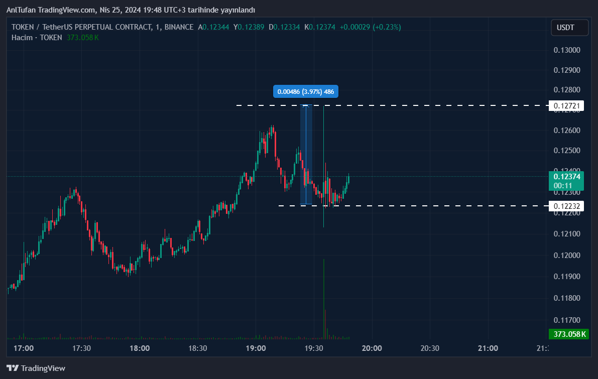 Binance spot piyasada bulunmayan TOKEN, vadeli piyasada yer alıyor. TOKEN kısa bir süre önce bu duyuru ile birlikte %4’lük bir sıçrama gerçekleştirse de, bu yükselişlerin bir iğne olarak kaldığı ve TOKEN’in yeniden düşüşe geçtiği görüldü.