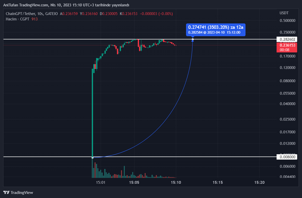 Bugün itibariyle ise ChainGPT isimli bir yapay zeka altcoin’i piyasaya sürüldü. Bybit, Kucoin ve Gate.io gibi önemli 6 adet borsada aynı anda çıkış yapan CGPT, şuan itibariyle volatil hareketler sergiliyor.