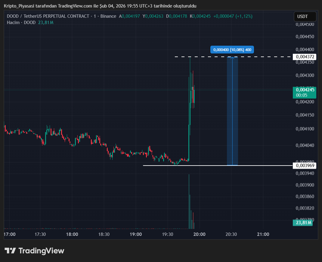 Bu son gelen listeleme duyurusu ile birlikte DOOD fiyatın ani bir sıçrama oldu. Binance borsasında da listeli olan DOOD, dakikalar içerisinde %10 oranında değer kazandı.