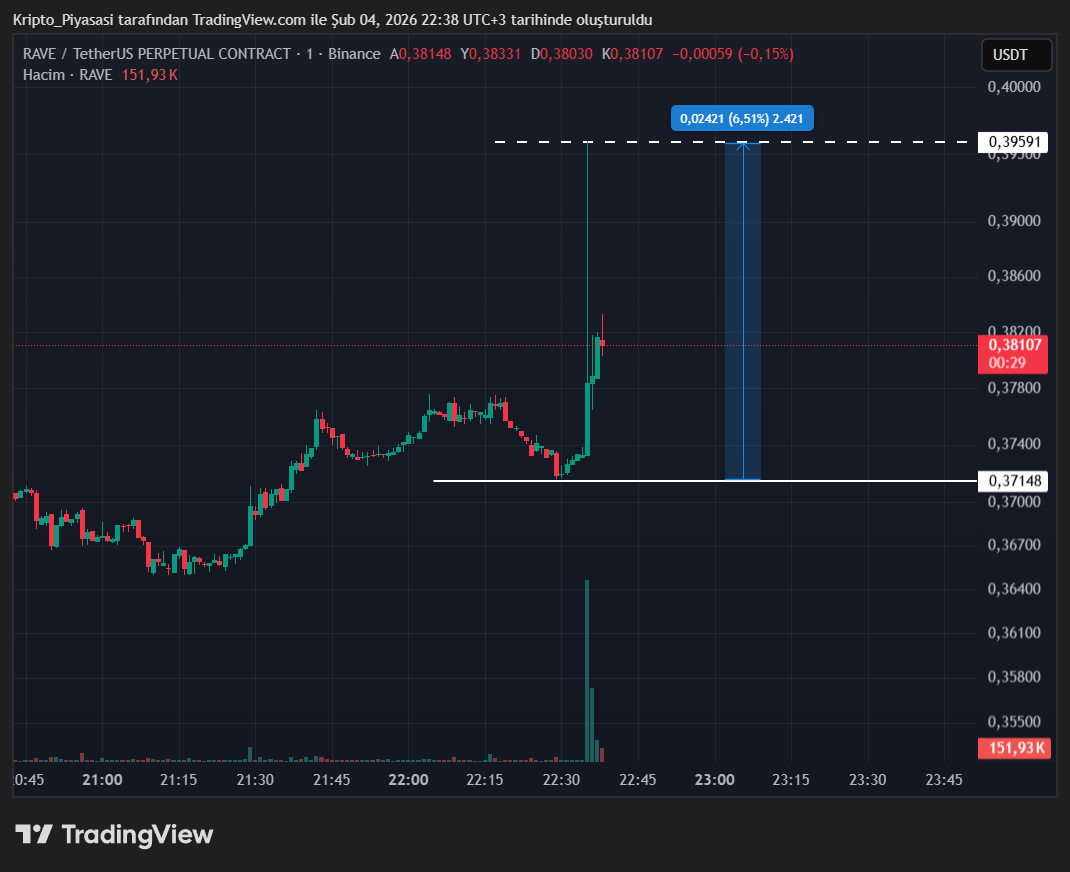 Bu son gelişme sonrasında Binance borsasında da listeli olan RaveDAO (RAVE), yukarı yönlü hareketler gerçekleştirdi. Kripto piyasasındaki düşüşlere rağmen RAVE, son dakikalarda %6’lık bir sıçrama yaptı.
