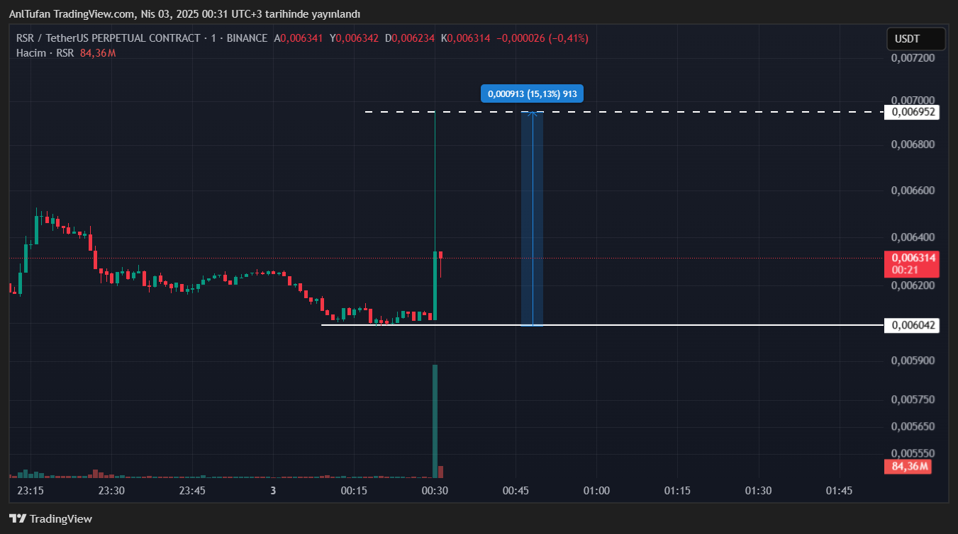 Bu son gelen listeleme duyurusu ile birlikte RSR fiyatında yükselişlerin yaşandığı görüldü. Daha önce Binance’de listelenmiş bir altcoin olan RSR, son gelen haberler neticesinde %15’lik bir sıçrama gerçekleştirdi.