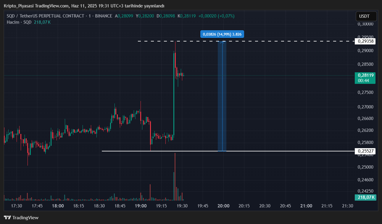 Bu son gelen listeleme duyurusu, SQD fiyatında artışları tetikledi. Dakikalar içerisinde %15 oranında değer kazanmayı başaran SQD, dikkatleri üzerine çekti.