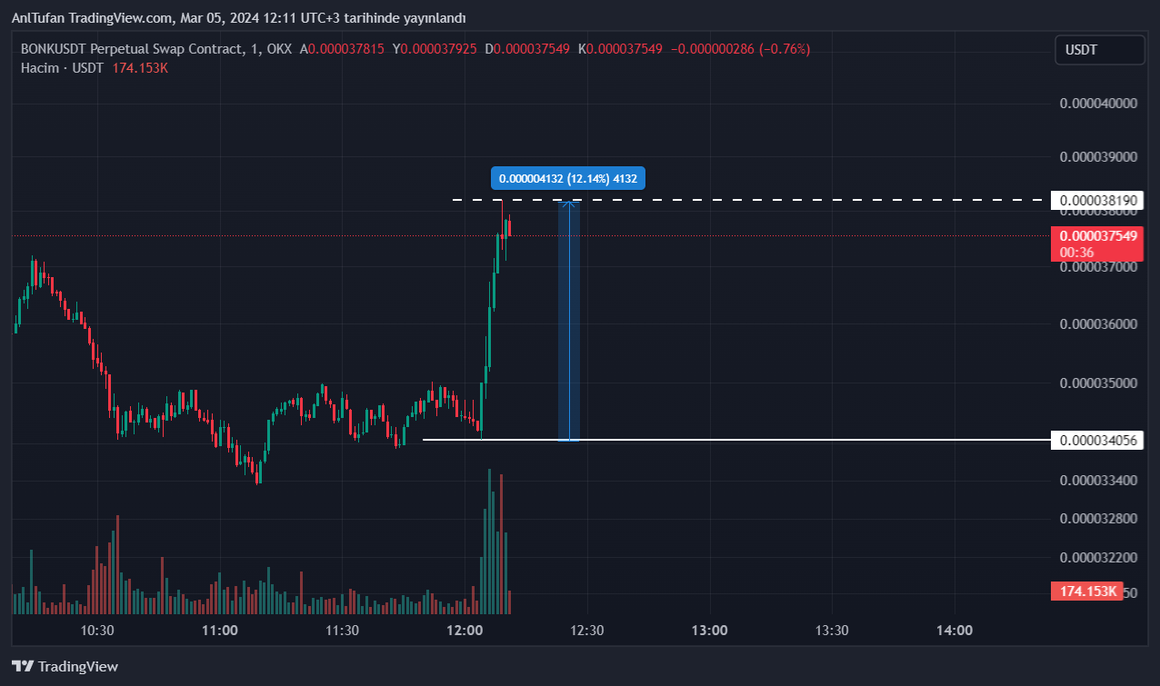 Solana tabanlı bir meme coin olan BONK, son dakikalarda gelen bu haber ile birlikte yükselişe geçti. BONK Robinhood listeleme duyurusunun ardından kısa bir süre içerisinde %12’lik bir artış yaşamayı başardı.