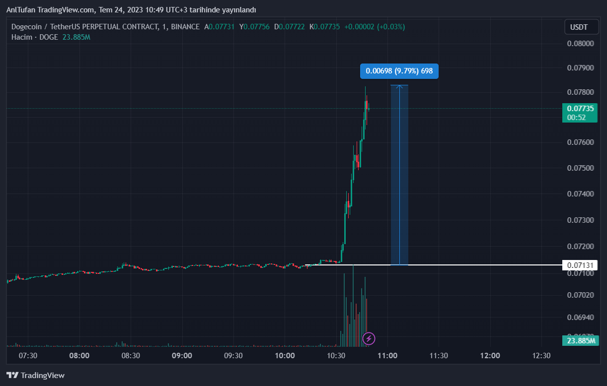 Çok kısa bir süre içerisinde yüzde 10’a yakın değer kazanan DOGE, önümüzdeki süreçte yükselişlerine devam edebilecek mi? merak konusu..