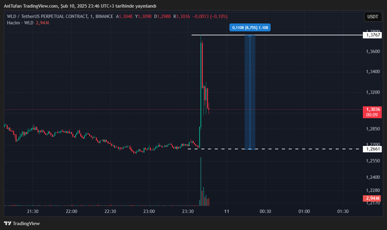 OpenAI CEO’su Sam Altman‘ın kripto para projesi olan Worldcoin (WLD) ise bu gelişmeler doğrultusunda ani artışlar yaşadı. WLD dakikalar içerisinde %10’a yakın bir sıçrama yaparak dikkatleri üzerine çekti.