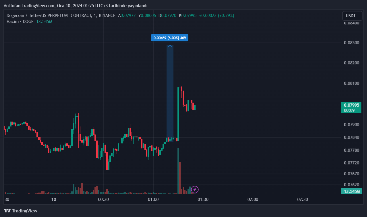 Kısa vadede %6’lık bir yükseliş yaşayan DOGE, dakikaların ilerlemesiyle birlikte bu kazançların büyük bir çoğunluğunu kaybetti.