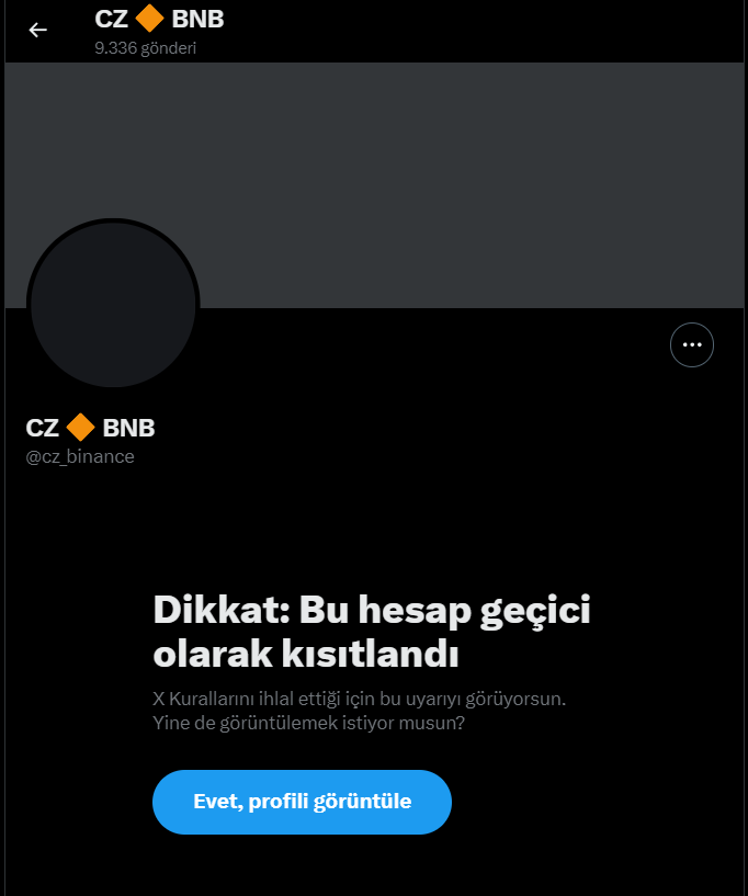 Dakikaların ilerlemesiyle birlikte Binance kurucusu CZ’nin X hesabının art arda çok fazla isim değişikliği yapılmasından ötürü kısıtlandığı ortaya çıktı.