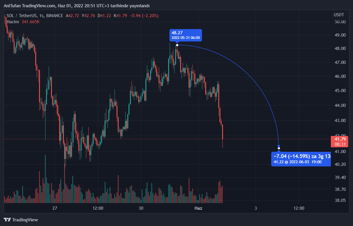 İlerleyen saatlerde blok zincirinin toparlanması ile birlikte yukarı yönlü hamle yapabilecek olan SOL, BTC‘nin değer kaybetmeye devam etmesi durumunda ise çok daha sert düşüşler yaşayabilir gibi gözüküyor.
