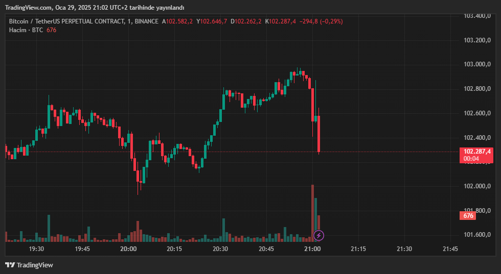 Bu son gelen karar ile birlikte lider kripto para birimi Bitcoin’de (BTC) satış baskısı bir miktar arttı. BTC’nin son gelişmeler ile 102.300 dolara gerilediği gözlemlendi.