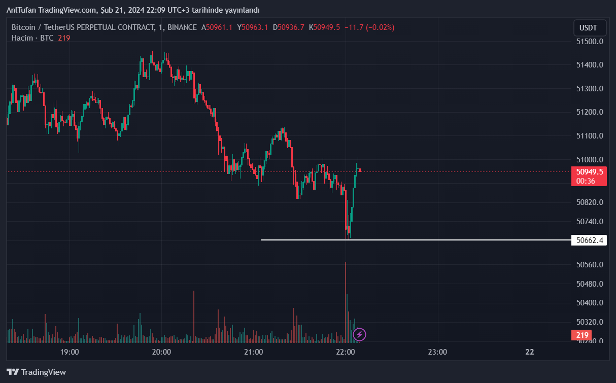 Bitcoin son tutanaklar ile birlikte 50.650 dolara kadar gerilese de, yeniden 51 bin dolar seviyesine ulaşmayı başardı.