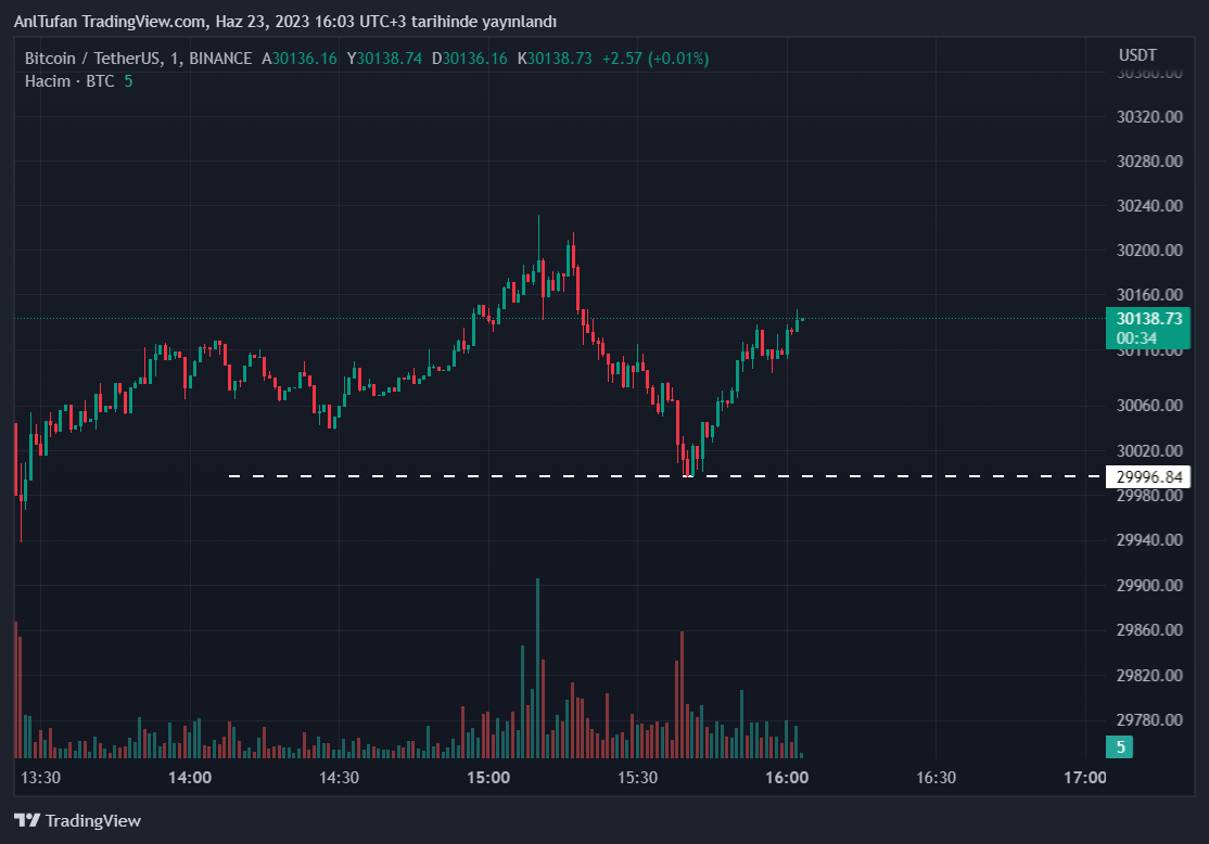 30 bin dolar seviyelerinden yukarı yönlü sekmeyi başaran BTC, an itibariyle 30.150 dolar seviyelerinden işlem görmekte.