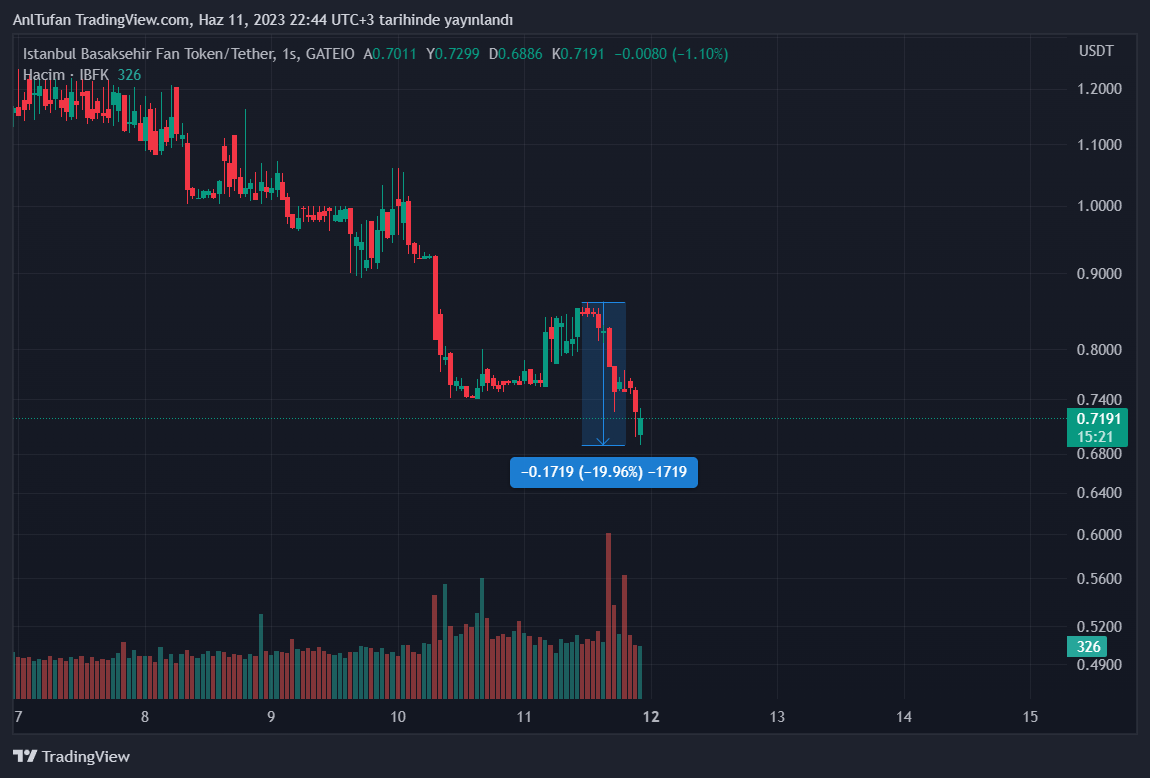 Gündüz saatlerinde yükselişe geçen IBFK Fan Token, maç saati öncesinde düşüşe geçmişti. Kupanın da kaybedilmesiyle birlikte IBFK’da düşüşler yüzde 20’li seviyelere ulaşmış durumda.