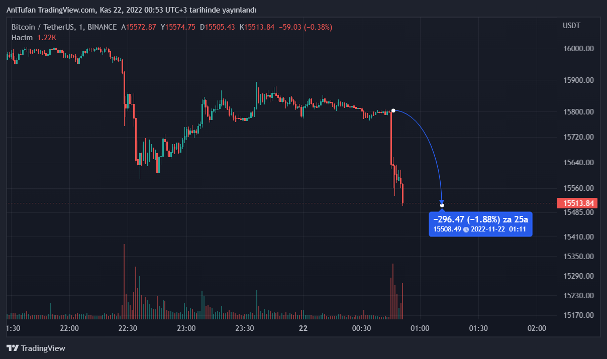 Bloomberg’in Genesis hakkındaki son iddiaları paylaşmasının ardından sonra lider kripto para birimi Bitcoin‘in (BTC) dakikalar içerisinde tekrardan 15.500 dolar seviyelerine kadar gerilediği görüldü.