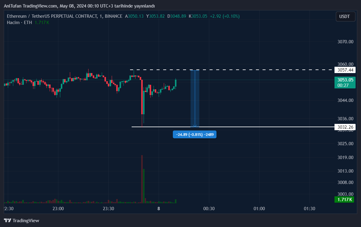Lider altcoin Ethereum (ETH) bu gelişme ile birlikte Binance vadeli piyasada birkaç dakika içerisinde ortalama %1’e yakın bir düşüş yaşasa da, ETH’nin kısa bir süre içerisinde toparlandığı görüldü.