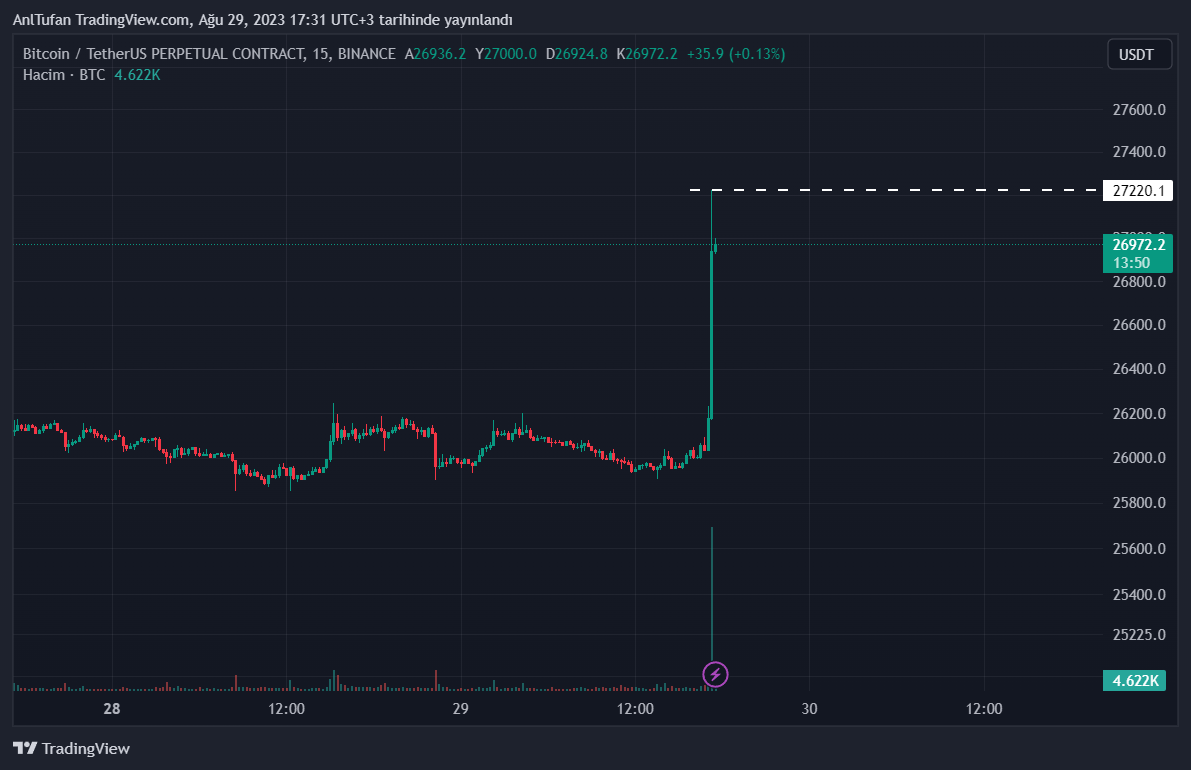 Son dakikalarda lider kripto para birimi Bitcoin’in (BTC) volatil bir şekilde yükseliş yaşadığı görülüyor. Grayscale’in zaferi sonrasında BTC 27.200 dolara kadar bir yükseliş yaşadı.