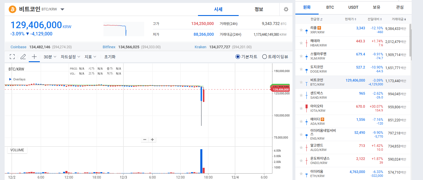 Kısa bir süre önce Güney Kore Cumhurbaşkanı ülkede sıkı yönetim ilan etti. Bu sıkı yönetim kararı ile birlikte Bithumb ve Upbit gibi Kore merkezli kripto para borsalarında Bitcoin (BTC) ve altcoin fiyatlarında %20 – %40 aralığında düşüşler meydana geldi.