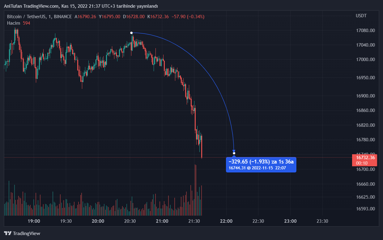 Lider kripto para birimi Bitcoin‘e (BTC) baktığımızda ise son dakikalarda 3. dünya savaşının başlama ihtimalinden dolayı yüzde 2 oranında değer kaybettiği görülebiliyor.