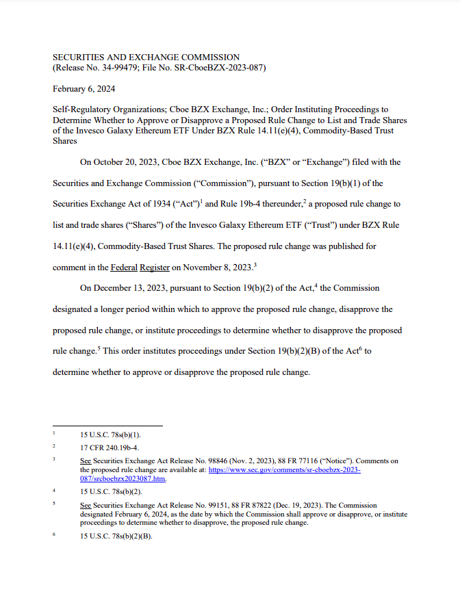 Son dakikalarda gelen bilgilere göre ABD Menkul Kıymetler ve Borsa Komisyonu (SEC), Invesco & Galaxy spot Ethereum ETF başvurusunu erteledi. SEC’in spot Ethereum ETF başvurularını ertelemesi kripto piyasasında beklenen bir gelişmeydi.