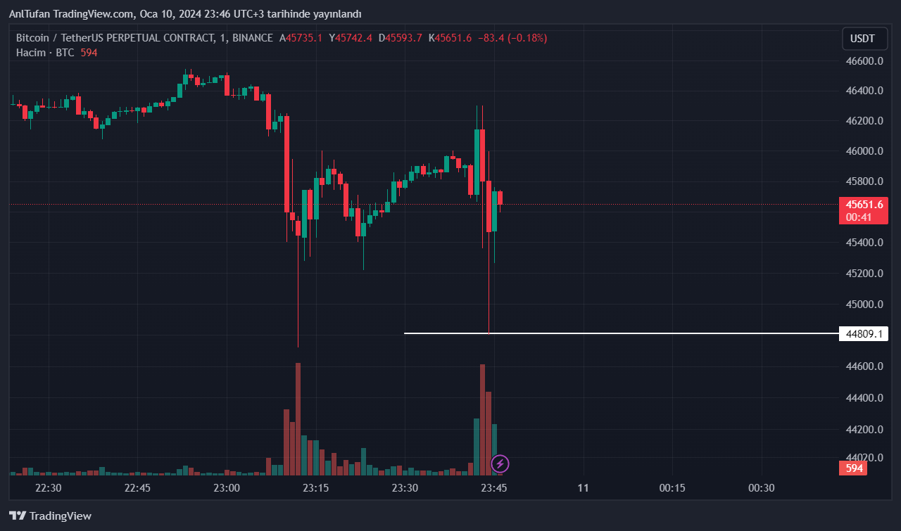 BTC kısa bir süre içerisinde 44.800 dolara kadar gerilese de, bu seviyeden tepki almayı başardı.