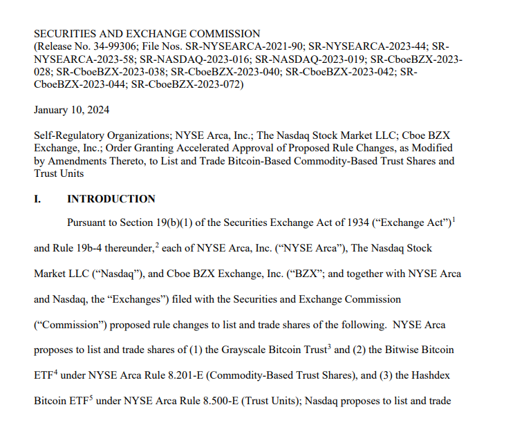Spot Bitcoin ETF onayının SEC’in resmi internet sitesi üzerinden yayınlandığı görülüyor.