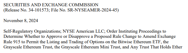 Son dakikalarda gelen bilgilere göre ABD Menkul Kıymetler ve Borsa Komisyonu (SEC), spot Ethereum Opsiyon ETF’lerini erteledi. Kripto ETF’lerine karşı sıcak olmayan SEC başkanı Gary Gensler ve ekibi, Donald Trump‘ın zaferine rağmen halen tutumunu değiştirmemiş gibi gözüküyor.