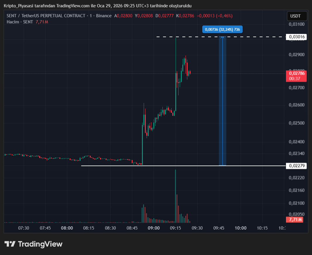 Bithumb listelemesiyle %20’lik sıçrama yapan SENT sonrasında bir miktar düşüş yaşasa da, Upbit listelemesiyle bir yükseliş daha yaşadı. SENT’in son dakikalardaki toplam yükselişi %30’lu seviyeleri aştı.