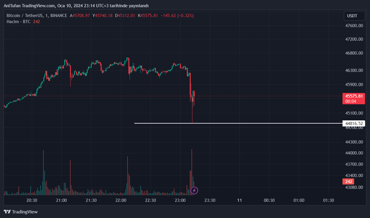 Bitcoin’de CBOE sözcüsünün onay beklediklerini açıklaması ile 44.816 dolardan bir tepki alarak yeniden 45.500 doların üzerine çıktı.