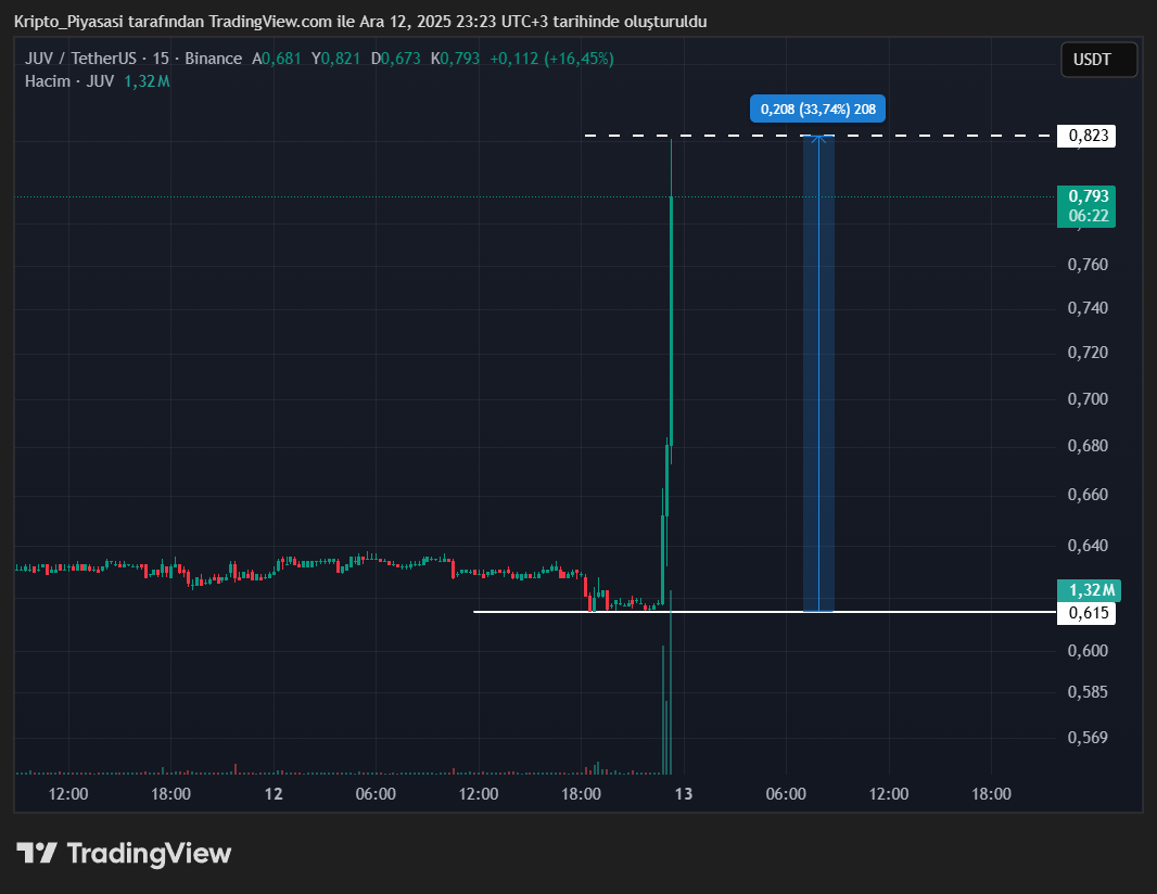 Bu son gelişme neticesinde Binance’de de listeli Juventus Fan Token (JUV) yükselişe geçti. Dakikalar içerisinde %30 oranında değer kazanan JUV, tüm dikkatleri üzerine çekti.