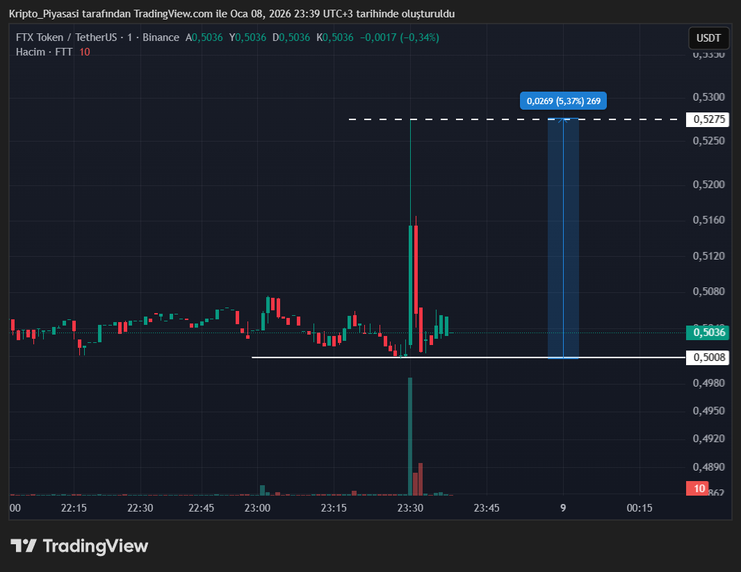 FTX iflas etmesine rağmen halen Binance’de yer alan FTT, duyumun paylaşılmasıyla birlikte %5’lik bir sıçrama yaptı. Sonrasında ise FTT’nin bu yükselişin tamamını kaybettiği görüldü.