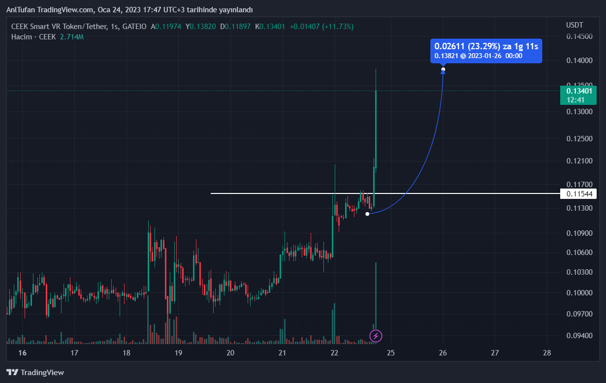 İlerleyen süreçte CEEK VR’ın bu yükseliş dalgasında 0.1510 dolar direncini aşmayı başarması ise son dakikalarda başlayan bu yükseliş trendinin çok daha volatil bir hal almasını sağlayabilir gibi gözükmekte.