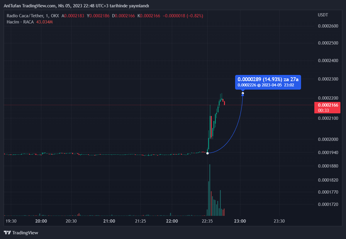 İlerleyen saatlerde RACA’non 0.00021 doların üzerinde kalması, yükselişlerin sertleşmesini sağlayabilir.