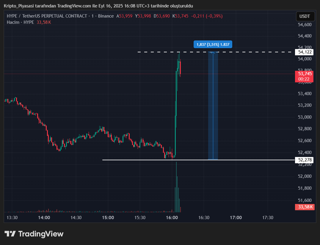 Ayrıca Circle, Hyperliquid’de doğrulayıcı olmayı hedeflediğini ve HyperEVM ile HIP-3 gibi programlara katılmayı değerlendirdiğini açıkladı. Bu son gelişme ile birlikte ise HYPE fiyatında anlık %4’lük bir sıçrama yaşandı.