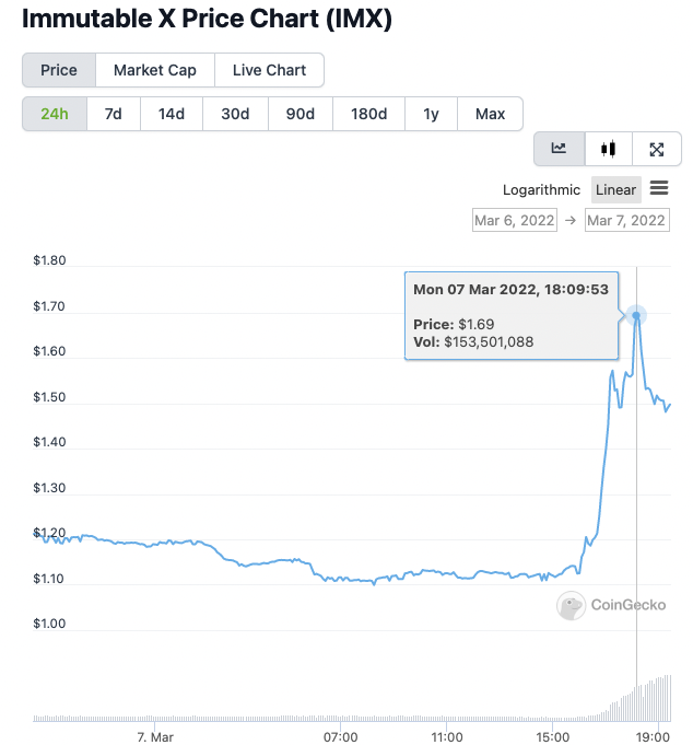 CoinList ön satışı ile piyasaya giriş yapan ve kısa sürede neredeyse 90 kat artarak 9 doları gören IMX, daha sonra ise kademeli olarak sert düştü. IMX, özellikle GameStop ortaklığı nedeniyle sert düşerken bu sefer iyi bir haber verdi.
